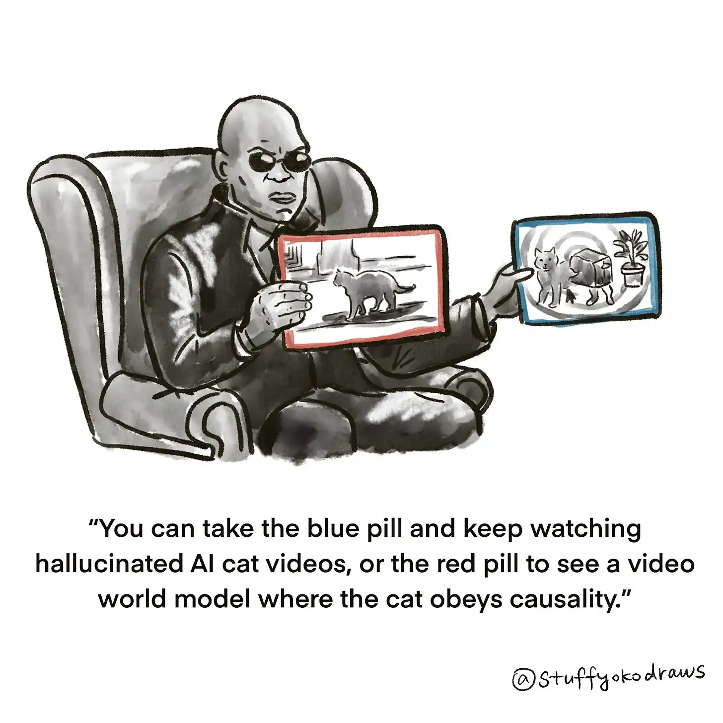 이러한 시스템은 캐릭터, 사물, 물리 법칙을 장기간 유지할 수 있어 행동이 실질적인 영향을 미치고 인과 관계가 전개될 수 있도록 합니다. 따라서 비디오는 단순한 매체를 넘어 다양한 것을 구축할 수 있는 공간으로 변모합니다. 로봇을 훈련시키고, 게임 메커니즘을 발전시키고, 디자이너가 프로토타입을 제작하고, 지능형 에이전트가 '실행'을 통해 학습할 수 있게 되는 것입니다.