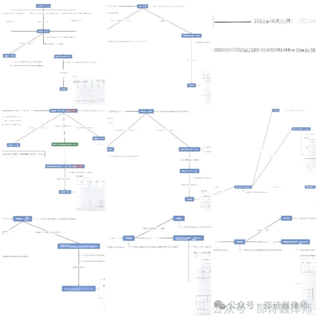 (邵律师团队代理某案中所绘制的部分资金流向图表)