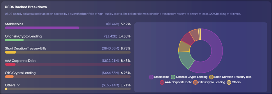 Although USDS has taken steps toward asset diversification, stablecoins (USDC) still account for nearly 60% of its reserves, far exceeding the overcollateralized portion (20%).