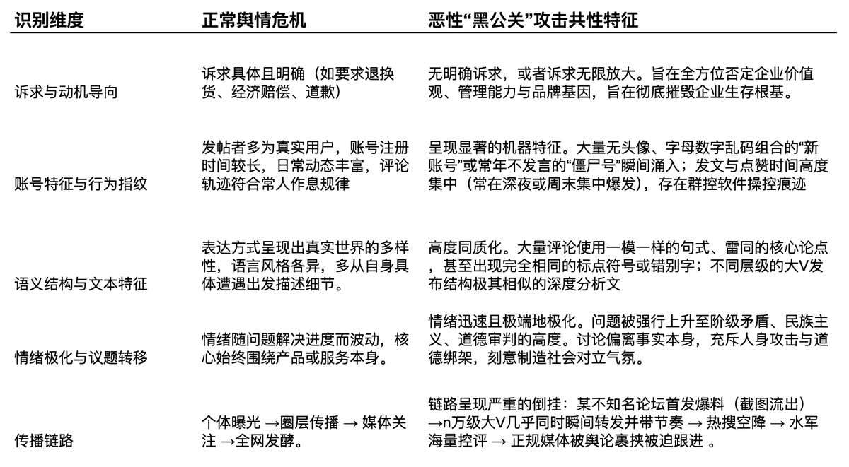"Black PR" activities in the business field aim to damage competitors' brand reputation, disrupt market expectations for their core products, and interfere with their major business decisions (such as financing, IPO listing, and annual new product launches) by artificially manipulating information flow and public opinion.