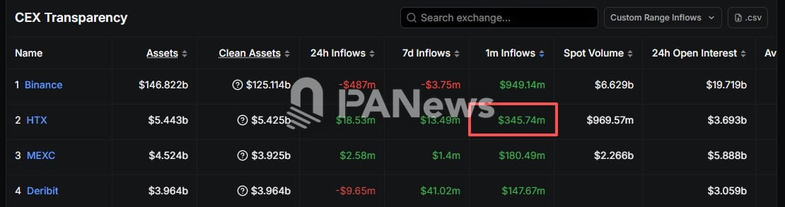 Huobi HTX's "Clean Assets" ranking rose to 6th, with monthly net capital inflow ranking 2nd in the industry.