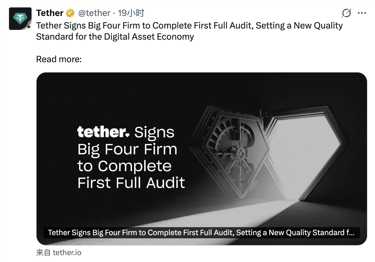 In addition to launching its compliant stablecoin USAT in the US, Tether recently announced that it has officially engaged one of the Big Four accounting firms to initiate its first-ever complete and independent financial statement audit. This audit is considered the largest ever in the financial markets, covering a complex asset structure including digital assets, traditional reserves, and tokenized liabilities.
