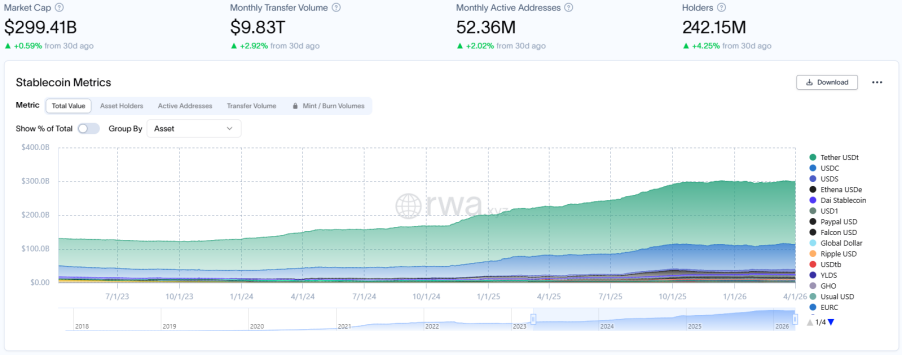 PANews Overview: After reaching a high of $300 billion, the market capitalization of stablecoins has entered a growth plateau, and the original expansion logic driven by human transactions and DeFi has nearly reached saturation.