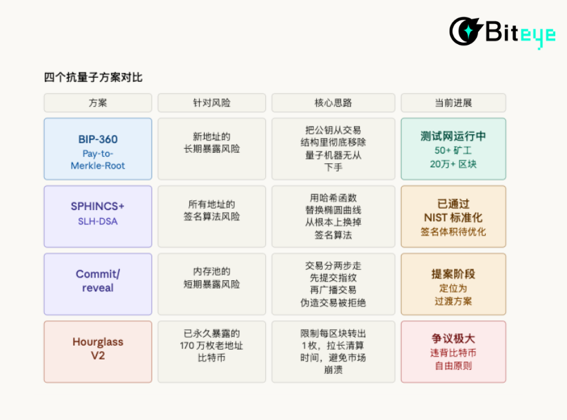 4️⃣ Hourglass V2: Proposed by developer Hunter Beast, this solution specifically targets the 1.7 million old addresses whose public keys have been permanently exposed. The logic behind this solution is pessimistic but realistic: since the public keys of these addresses can no longer be hidden, these coins will eventually be stolen once quantum machines become powerful enough.