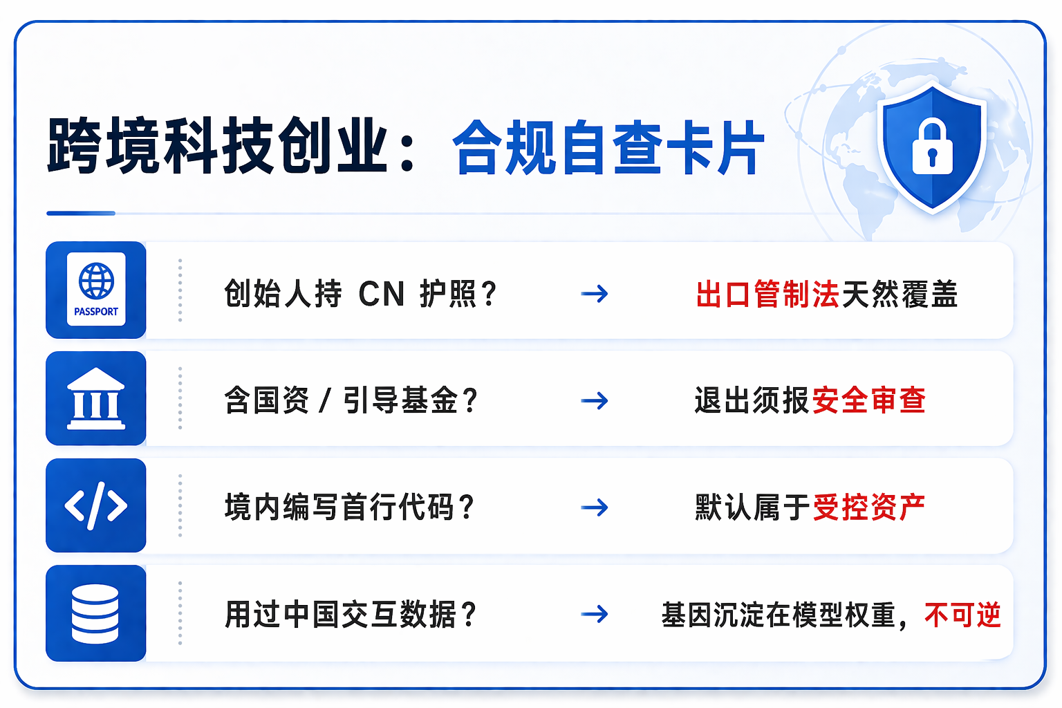 Based on the Manus case and the "penetrating review" principle established by the "Measures for Security Review of Foreign Investment," the following four red lines are clear. If any of these lines are crossed, the "shower-style" overseas expansion strategy is no longer viable.