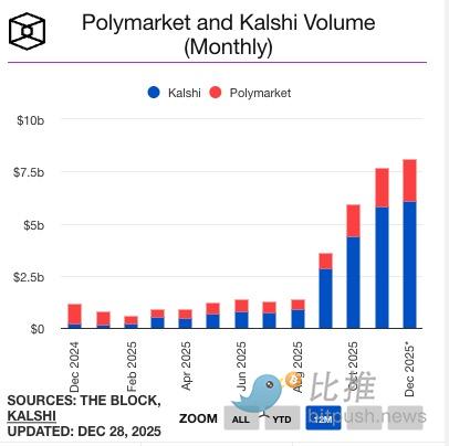 The overall trading volume in the prediction market has seen orders of magnitude growth over the past two years. According to industry data from Dune & Keyrock, the monthly trading volume in the prediction market has grown from less than $100 million at the beginning of 2024 to a stable level of over $1 billion by the end of 2025, demonstrating explosive growth.