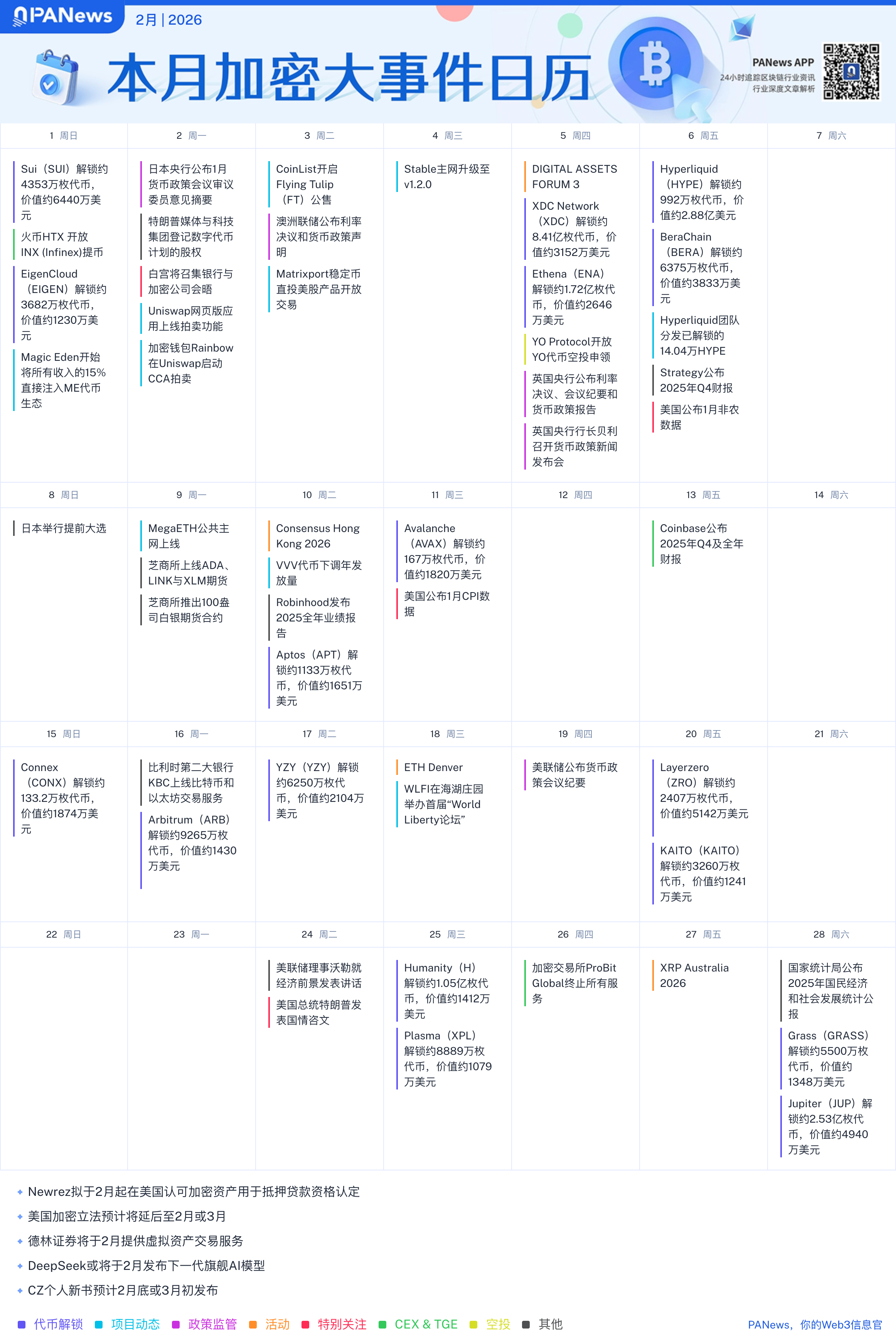 With more comprehensive coverage, flexible filtering, and convenient export, welcome to experience the new version of PANews encrypted calendar ????