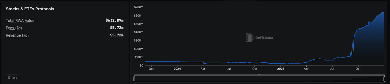 As shown in the figure, the TVL of tokenized stocks in the US has grown exponentially since the fourth quarter of this year.