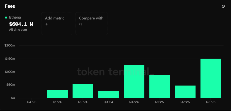 In fact, prior to the turmoil Ethena experienced, the protocol's underlying profitability had already been proven, and its fundamentals remained robust. Token Terminal data shows that Ethena captured $151 million in fees in the third quarter of this year, setting a new record for the platform, and the protocol's total cumulative revenue has exceeded $600 million.
