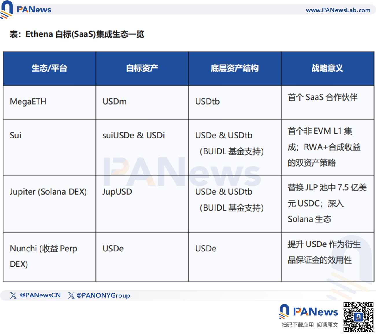 Currently, the WhiteLabel platform is Ethena's most important second growth driver. This is a SaaS (Stablecoin as a Service) product that shifts the protocol's role from asset issuer to infrastructure provider. The WhiteLabel platform allows market participants such as high-performance public chains, consumer applications, and wallets to efficiently issue their own customized USD assets using Ethena's underlying infrastructure. It has already partnered with DeFi, exchanges, and public chains.