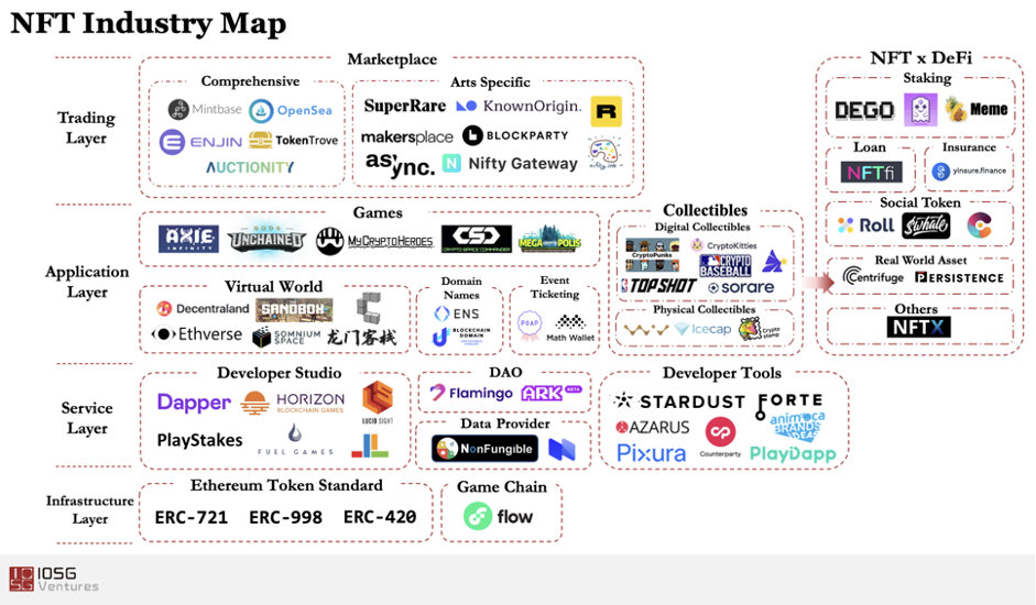 在过去的两年时间里,我们目睹了NFT领域日渐壮大。从底层代币协议以及公链到开发平台、应用程序、交易平台,如今NFT的版图已经覆盖多个层级。我们看好基于NFT和DeFi结合的项目在今年的突破性发展。日光之下并无新事,早在几年前,在行业内就有诸多尝试,将NFT结合到区块链游戏中,以为游戏中的虚拟资产等提供永久性的保存和价值依托。然而,当时的时机还没有完全成熟,因此NFT没有得到爆发性增长。我们认为,目前时机已经相对成熟,主要体现在以下几个方面:1)社群对于DeFi的热情参与已经形成了对于参与门槛较高的容忍度,对于新兴的NFT类型项目有极大的参与热情和较高的参与能力,也极大的缩短了对新用户的教育周期;2)行业逐步成熟,形成更实际的获客策略,比如基于NFT的游戏的成败更取决于游戏本身的吸引力;3)包括底层协议、二层网络、二级交易市场在内的基础设施逐步完善,为以NFT为依托的游戏、社交和娱乐应用的大规模使用扫除了技术和流动性障碍。