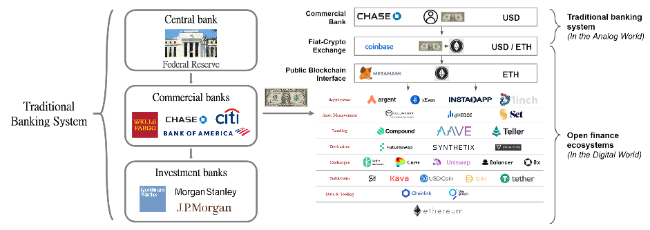 人类的货币历史和文明史一样漫长。相较互联网的进程,整个金融行业的进度仍然缓慢。2008年的世界金融危机,加深了世界货币金融制度的潜在风险。正是在这样的背景之下,中本聪创造了比特币。过去的二十年互联网快速吞噬整个世界,但是最近的五年我们看到一个趋势,区块链正在吞噬金融世界,运行在以太坊世界计算机上的开放式网络开始诞生了不同细分方向的去中心化金融应用(以下简称DeFi)。