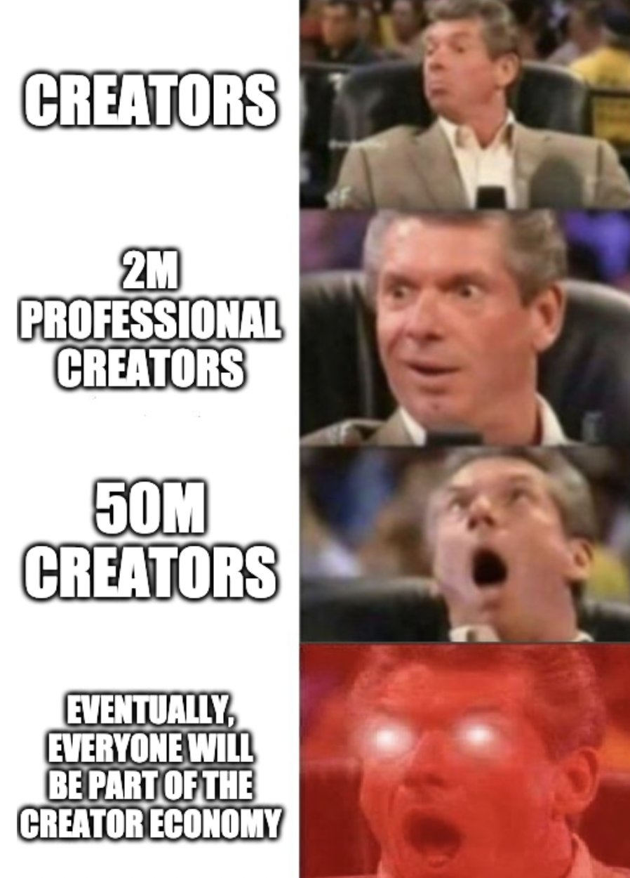 我们正处于创作者被视为企业的阶段。创作者现在已经创造了一些设置,让他们的粉丝在平台外关注他们。这些创作者在传统社交平台的标准广告之外还有多种收入来源。