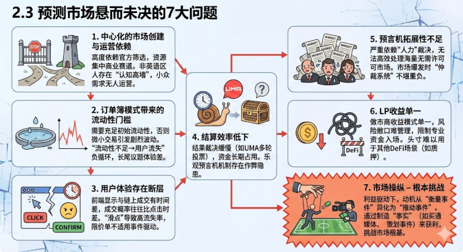 5. Insufficient scalability of oracles: Currently, oracles heavily rely on decentralized adjudication mechanisms involving "human" factors (such as voters in UMA), which cannot efficiently handle the thousands of permissionless markets that may emerge in the future.