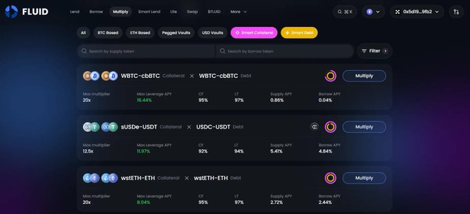 Fluid combines lending with a DEX, accepting LPs (such as ETH/wBTC) as collateral, allowing LPs to still earn fees while providing collateral. Fluid calls this Smart Collateral.