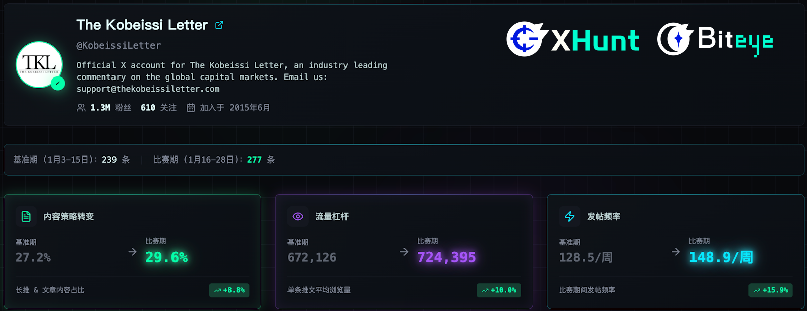 Posting strategy during the competition: ???? +15.9% (Weekly average posts surged to 148.9, daily average >20 posts)