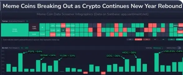 Contrary to many people's expectations, it was not Bitcoin or Ethereum that ignited the crypto market at the beginning of the new year, but Meme Coin. After a period of quiet holidays and sluggish market activity, Meme Coin is making a strong comeback.