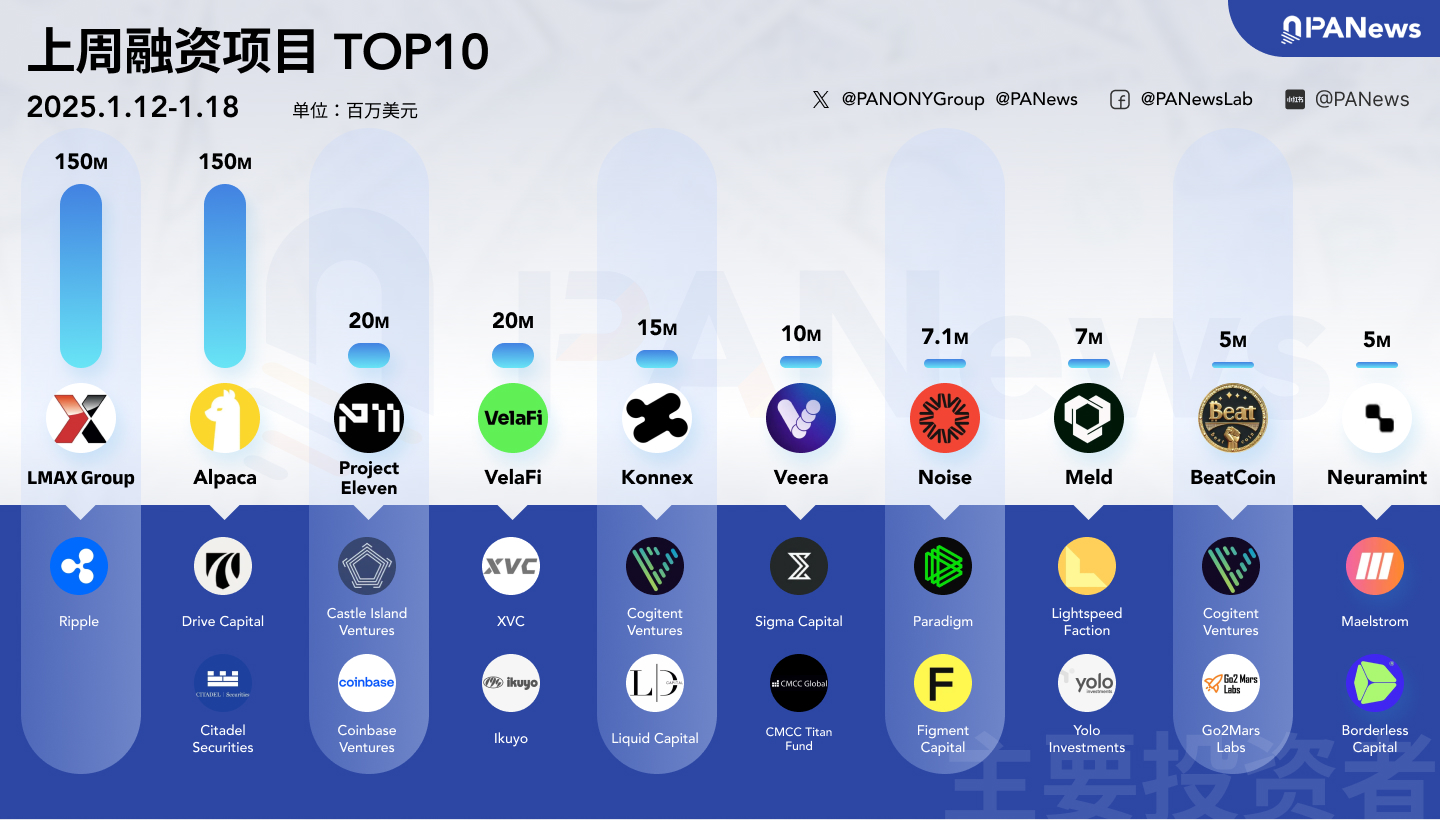 According to incomplete statistics from PANews, there were 15 investment and financing events in the global blockchain sector last week (January 12-18), with a total funding scale exceeding US$414 million. An overview is as follows: