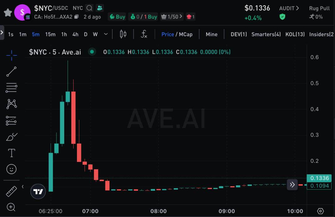According to data from BeosinTrace, address 9Ty4M has purchased 2,301,250 and 1,566,926 NYC tokens on Jupiter through addresses FWuiWEdkcR1NLPjozcEuErtGGDZG5kyPu3oszmnF8uni and H7Lnoh82SZghsXmoqffoCiFz7U3D1cwZ8ZPjRUMU7fc5 respectively. However, the price of NYC has only returned to 0.133-0.134, with a total market capitalization of approximately $130 million.