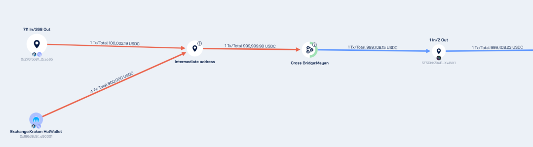 Further tracing of the aforementioned cross-chain funds reveals that they originated from the Arbitrum address 0xBc985b167C5F3801B19E2Dec7082c2fcbBF07e91. Tracing further back, it was found that 90% of these funds were withdrawn from Kraken, and 10% came from an unknown multi-chain active transaction address 0x276fbb81c8a7567ad2412469a549bd4dc82cab65.