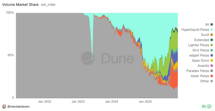 Throughout the year, various wallets have been vying to launch perpetual trading capabilities on DEX gateways. Metamask and Phantom were the first to do so, and last week Bitget also announced its integration. Other startups such as Axiom, BasedApp, XYZ (which operates on HIP3), and several AI trading platforms have also been trying to gain a share of the market by integrating with these platforms.