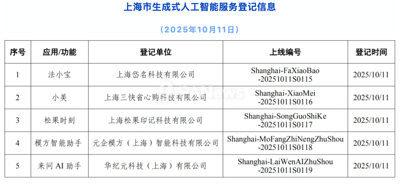 PANews reported on October 11 that according to the WeChat public account of "Shanghai Internet Information Office", as of October 11, Shanghai has added 5 new generative artificial intelligence services that have completed registration, and a total of 119 generative artificial intelligence services have been registered.