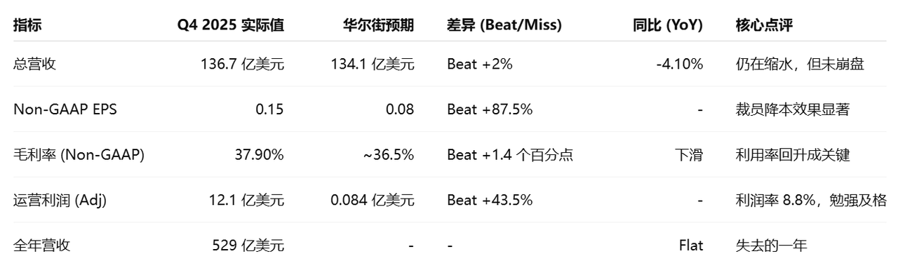 The main reason is that the Q1 2026 guidance was extremely conservative, with revenue falling below consensus expectations and non-GAAP EPS even being pushed down to 0. For short-term funds, this is tantamount to a blatant signal: "Don't expect profit improvement next quarter." In a market accustomed to the "high growth narrative of AI," such guidance will naturally trigger a sell-off.