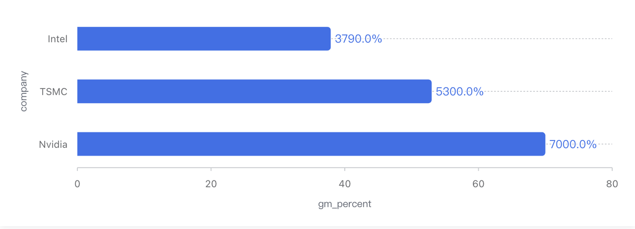 Secondly, while the gross margin has rebounded to approximately 38%, this level remains extremely low in Intel's history. Ten years ago, the company's gross margin consistently hovered around 60%, and even in recent years it has mostly remained around 50%. In contrast, TSMC ( TSM.M ) still maintains a gross margin exceeding 50%, and Nvidia's is even higher than 70%.