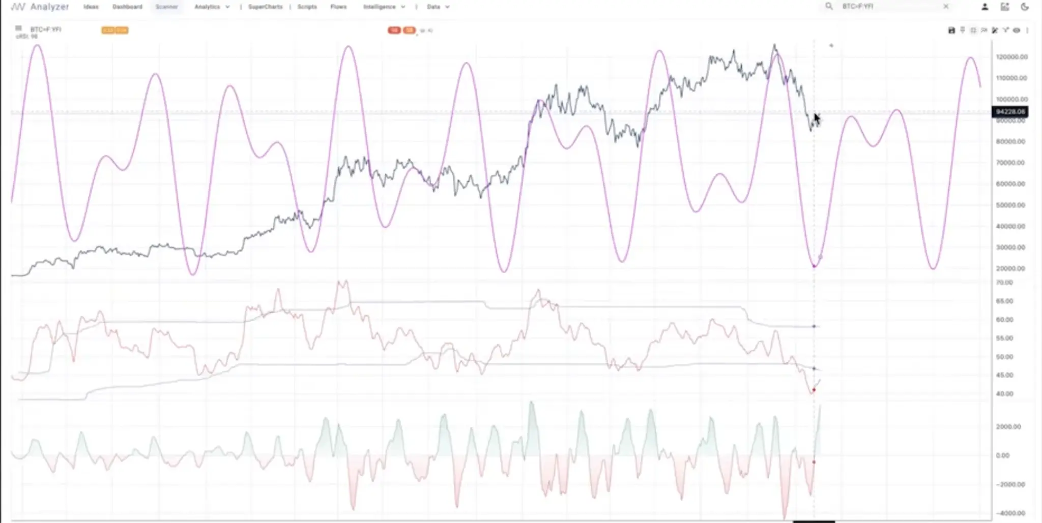 The blue line represents the price of Bitcoin. We saw a high of approximately $125,000 in October 2025, and our cycle model predicted a pullback at that time. Currently, this pullback appears to be nearing its end. I need to clarify that cycle analysis tells us the "wind direction," it's not the only decisive force in the market, but we must know which way the wind is blowing.