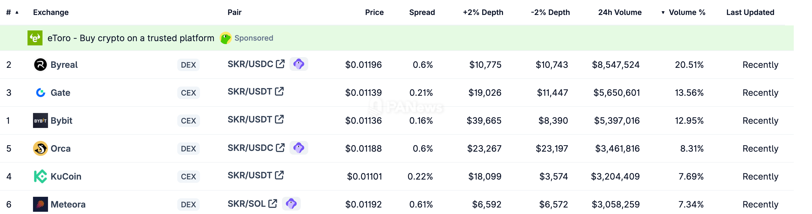 Currently, multiple platforms such as Byreal, Bybit Alpha, and Bybit have listed $SKR, providing trading and liquidity support for the token and continuously promoting the development of the Solana ecosystem.