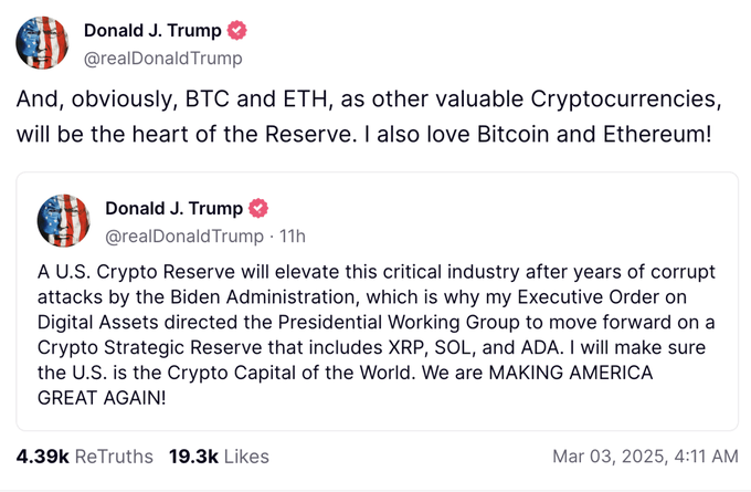 美国总统首次公开支持BTC;