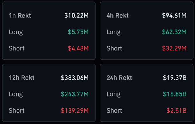 超过 190 亿美元的头寸被清算。