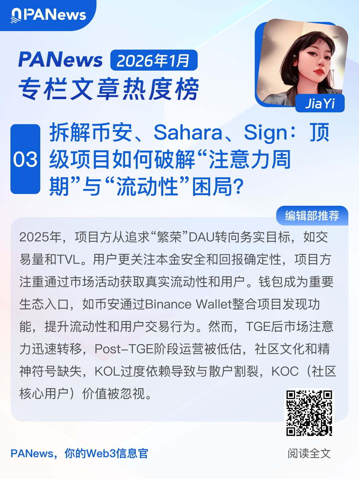 - " Analyzing Binance, Sahara, and Sign: How Top Projects Overcome the 'Attention Cycle' and 'Liquidity' Dilemma? " In 2025, project teams shifted from pursuing "prosperous" DAU to pragmatic goals such as trading volume and TVL. Users were more concerned with principal security and return certainty, and project teams focused on acquiring real liquidity and users through market activities. Wallets became important ecosystem entry points; for example, Binance integrated project discovery functionality through Binance Wallet to improve liquidity and user trading behavior. However, market attention shifted rapidly after TGE, post-TGE operations were underestimated, community culture and spiritual symbols were lacking, over-reliance on KOLs led to a disconnect from retail investors, and the value of KOCs (Key Opinion Consumers) was ignored.