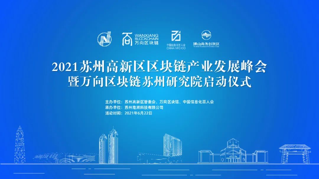 6月22日,“2021苏州高新区区块链产业发展峰会暨万向区块链苏州研究院启动仪式”在苏州高新区狮山国际会议中心举行。苏州高新区党工委副书记、管委会主任毛伟,中国信息化百人会执委、原中央网信办信息化发展局局长徐愈,中国万向控股副董事长兼执行董事、万向区块链董事长兼总经理肖风,中国电子技术标准化研究院区块链研究室主任/IEEE计算机协会区块链和分布式记账技术委员会主席李鸣,苏州市工信局副局长张文彪,苏州市科技局副局长孙艳,区领导高晓东、虞美华等出席活动。