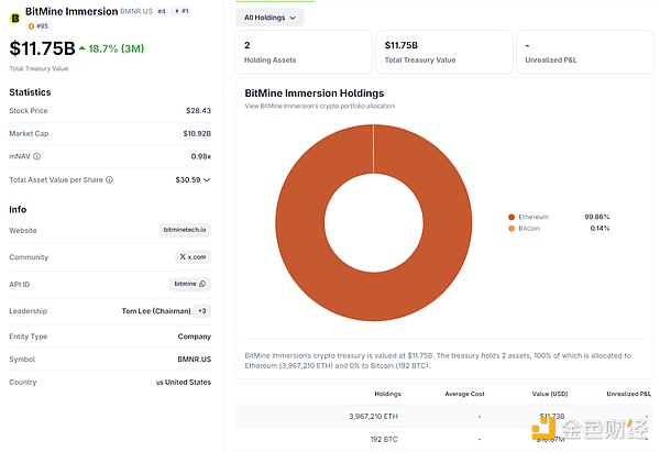 In June 2025, BitMine officially appointed Tom Lee as Chairman of the Board and simultaneously launched its ETH reserve strategy, making him a key decision-maker in the company's transformation. He proposed the positioning of "becoming the MicroStrategy of Ethereum" and promoted the vision of "5% alchemy," aiming to hold 5% of the global ETH circulation and reshape the company's valuation logic with "each ETH" as the core performance indicator.