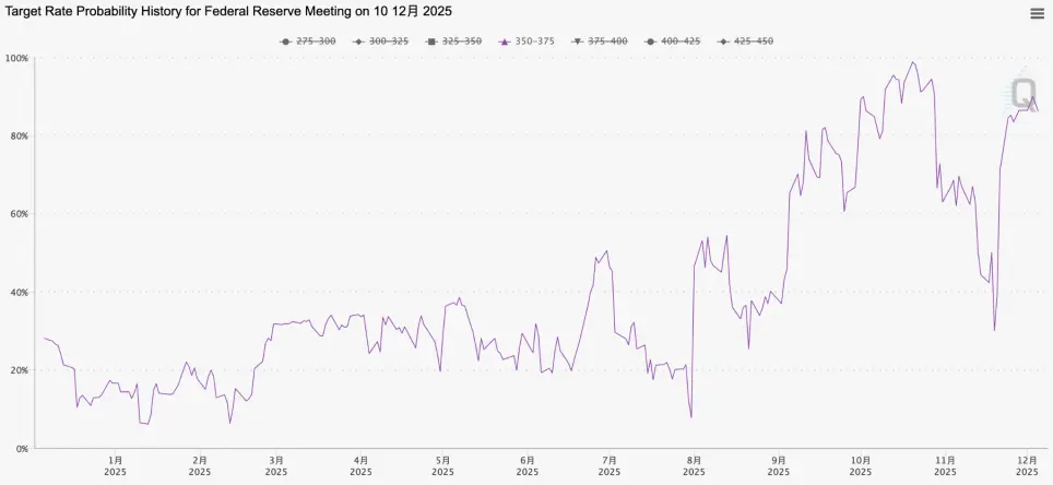 Core PCE rose 2.8% year-on-year, slightly below the expected 2.9%, while nominal PCE remained in the 2.7%-2.8% range, reinforcing the narrative of "inflation slowly declining but still above the 2% target." Because October PCE data is permanently unavailable, and November data will not be released until after the Fed's December policy meeting, September PCE data becomes the only reference point before the December 10th policy meeting. The lower-than-expected inflation data strengthens expectations of a December rate cut, and even continued rate cuts into 2026.