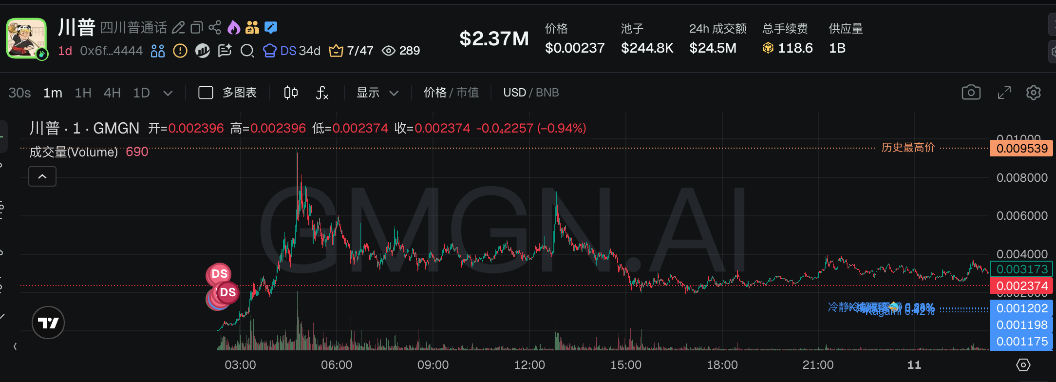 Previously, a well-known trader even posted an article endorsing the "Trump" meme, saying, "It's January again, it's Saturday again, it's Trump again, it's 10 o'clock again," implying that the "Trump" meme coin might even ride the wave of popularity seen in January of last year with Trump's official meme coin, Trump. Of course, this is just one angle the trader is looking for to buy in. Judging from the current market performance, it's just one of many rapidly declining meme coins, rather than a politically significant meme coin like Trump.