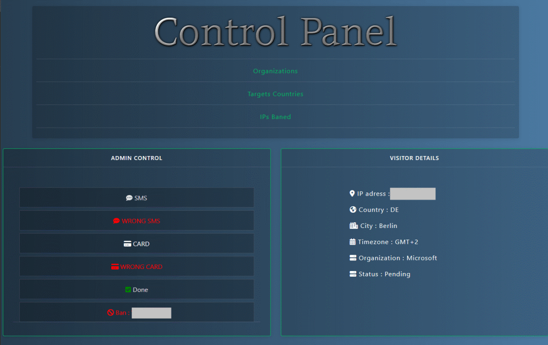 All data collected by phishing pages controlled by attackers is aggregated into a unified database and can be viewed and managed through their account interfaces.