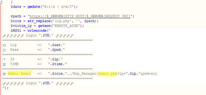 Unlike the methods described above, scripts using Telegram bots specify a Telegram API URL containing a bot token and a corresponding Chat ID, instead of an email address. In some cases, this link is even hard-coded directly into a phishing HTML form. Attackers design detailed message templates that are automatically sent to the bot after successfully stealing data. Code examples are shown below: