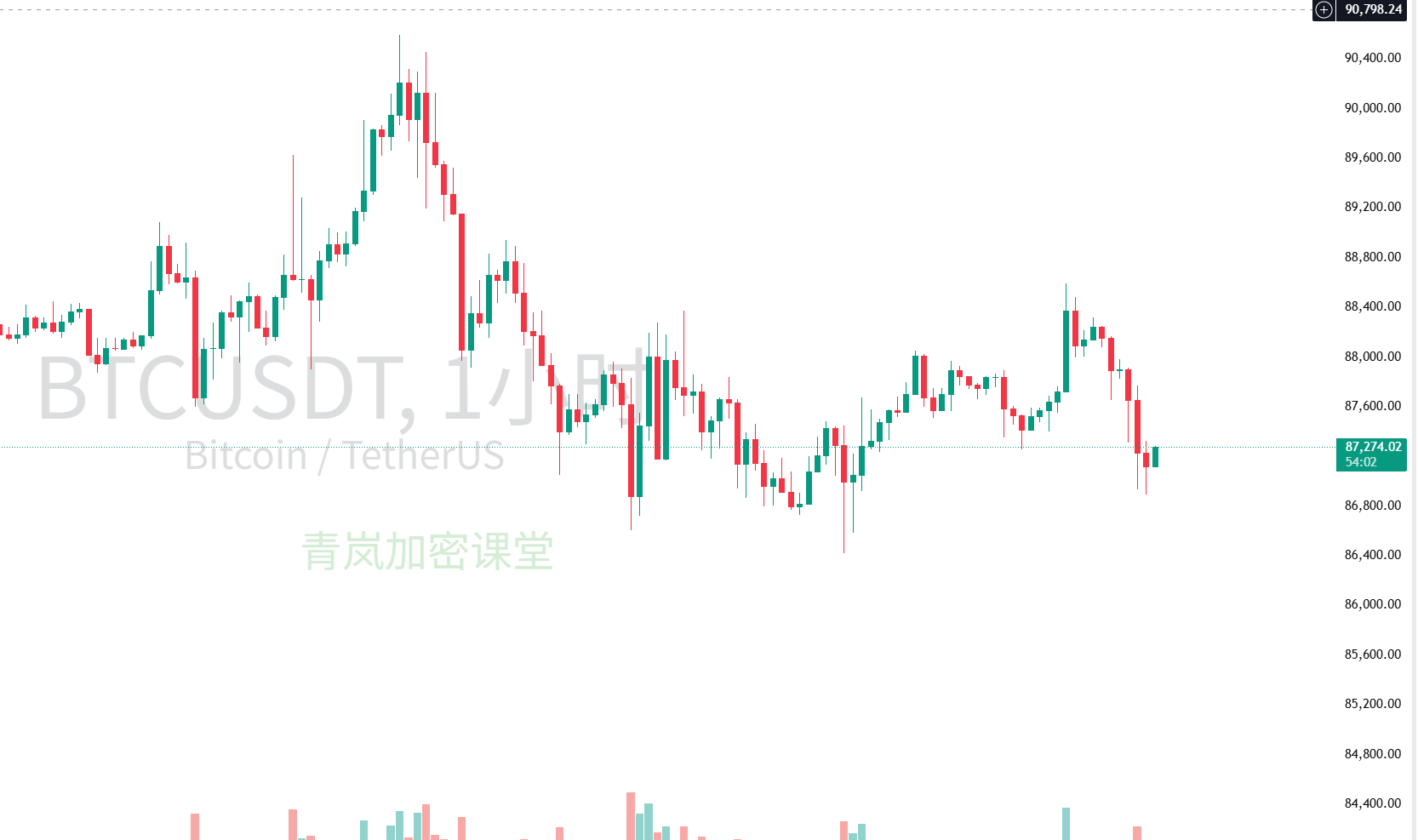 先给大伙儿看看大盘的德行:最近BTC的日线、4小时线、1小时线,全是“爹味十足”的下行趋势,价格就在8万7千刀附近晃悠,每次想往上冲都被压得死死的。这说明短期市场抛压重得很,咱们心里得有根弦,别盲目抄底当接盘侠!