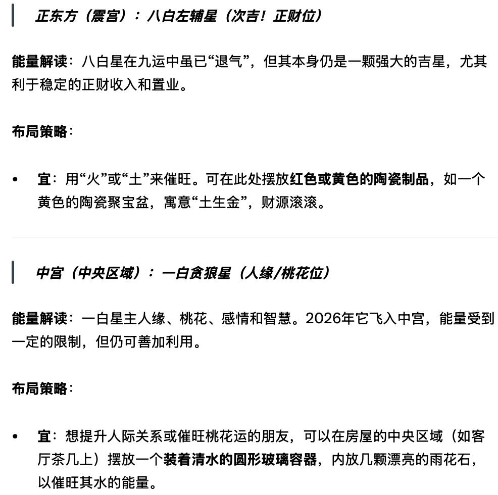 The following is a detailed interpretation and layout strategy for each direction of the Nine Palaces Flying Stars in 2026:
