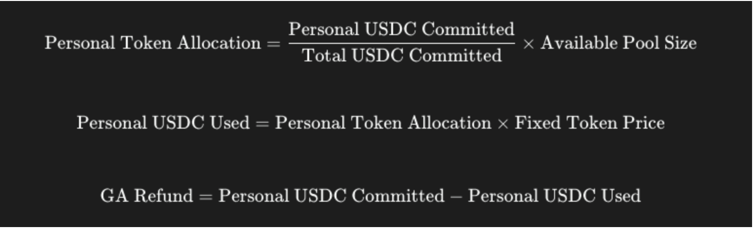 Founders can choose to open a Growth Allocation (GA) pool, funded by the sale of up to 5% of their team's allocated tokens. Participants deposit USDC in exchange for a token allocation based on a fixed public FDV (fully diluted valuation) determined by the founders.