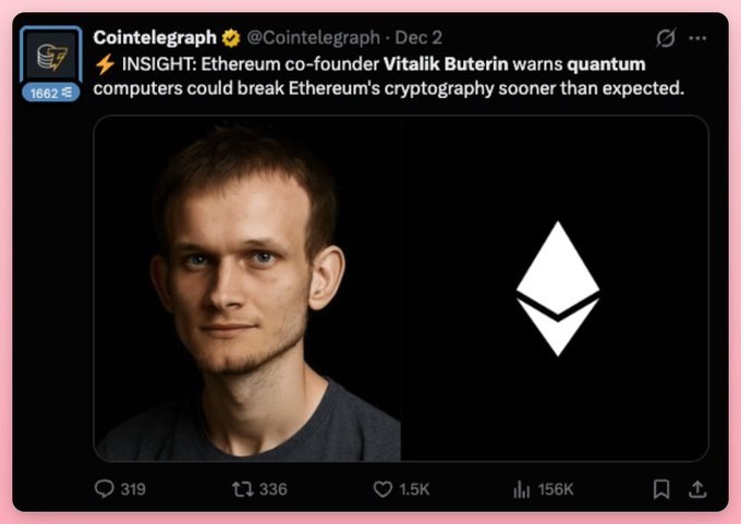 Vitalik recently warned that quantum computers could break the elliptic curve cryptography that protects Bitcoin and Ethereum within the next four years.