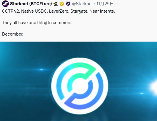 Starknet will support LayerZero, Stargate Finance, native USDC, CCTP v2, and the NEAR interaction mechanism in December.