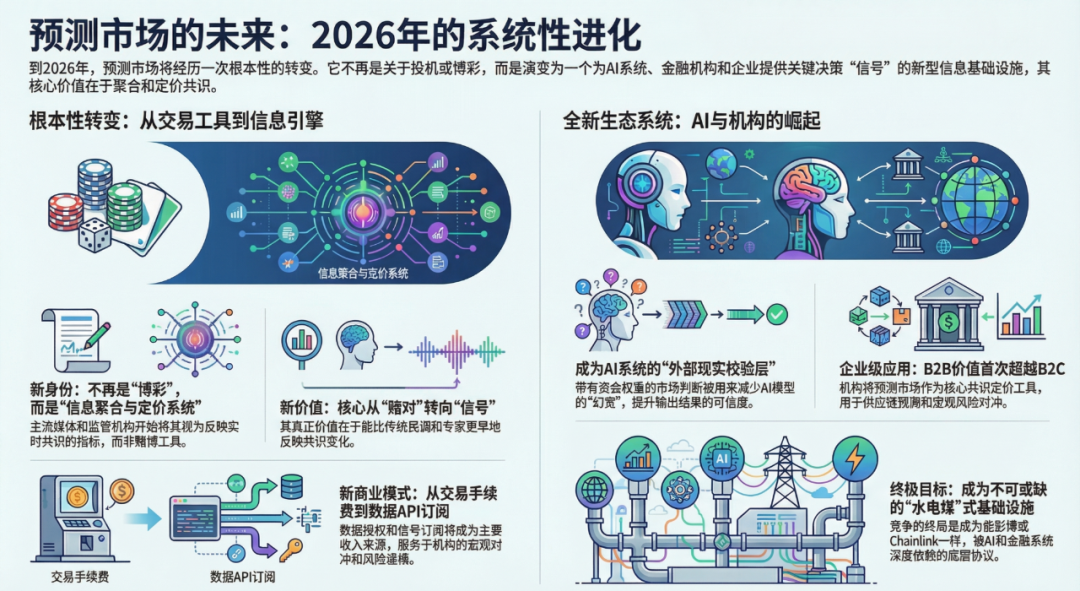 Today, prediction markets are gradually transforming from a "fringe financial experiment" into a foundational layer for information, capital, and decision-making systems. In 2024–2025, the market witnessed the explosive growth of platforms like Polymarket and Kalshi; in 2026, the market may face the systemic evolution of prediction markets as a "new type of information infrastructure."