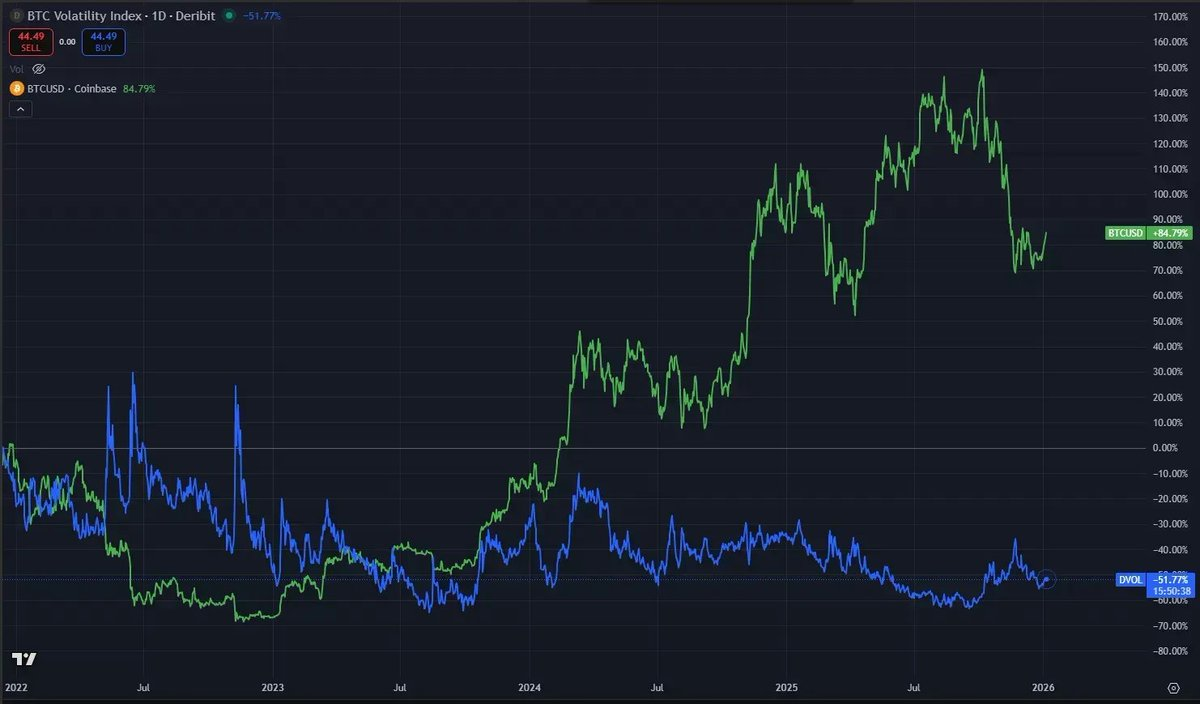 In August 2025, when the price of Bitcoin first broke through $120,000, DVOL was nearing a local low. The options market did not adequately compensate for the ongoing risk.