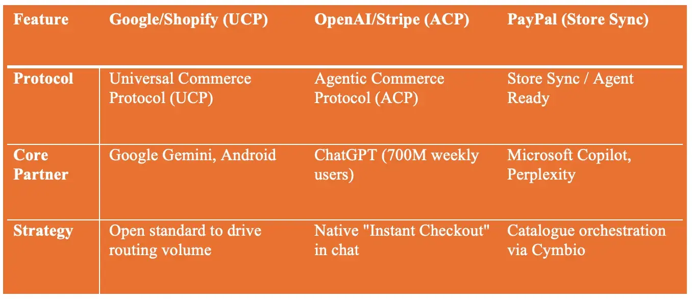 PayPal が Agentic Commerce を「製品とサービス」として推進している一方で、Google と Shopify は機能横断的で標準化された Agentic Commerce プロトコル フレームワークを構築しています。