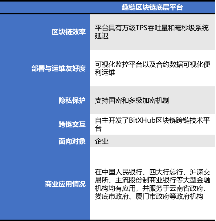 趣链的区块链底层平台目前在中国人民银行、四大行总行、沪深交易所、主流股份制商业银行等大型金融机构均有应用