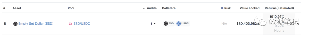 ESD作为稳定币本身不具有升值空间,但ESD代币的持有人也有机会获得收益,原因是ESD代币的持有人通过质押其代币有机会获得新增的ESD奖励。当然,前提是ESD市值不断增长。目前ESD市值为2.37亿美元,假设其市值有机会增长到10亿美元,会有数亿美元分发给ESD流动性提供者和代币质押者。
