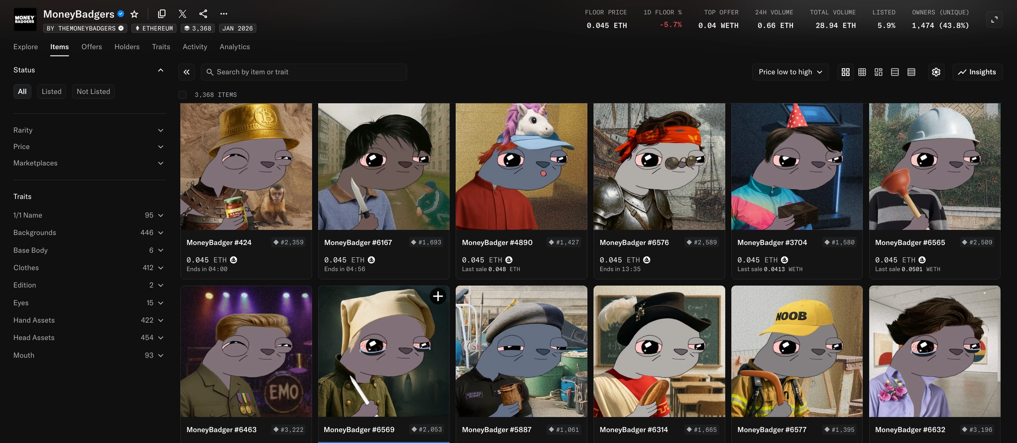 시장 성과 및 가격: MoneyBadgers NFT는 2026년 2월 5일에 출시되었으며 총 공급량은 10,000개입니다.